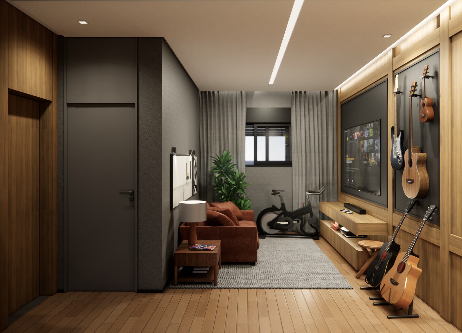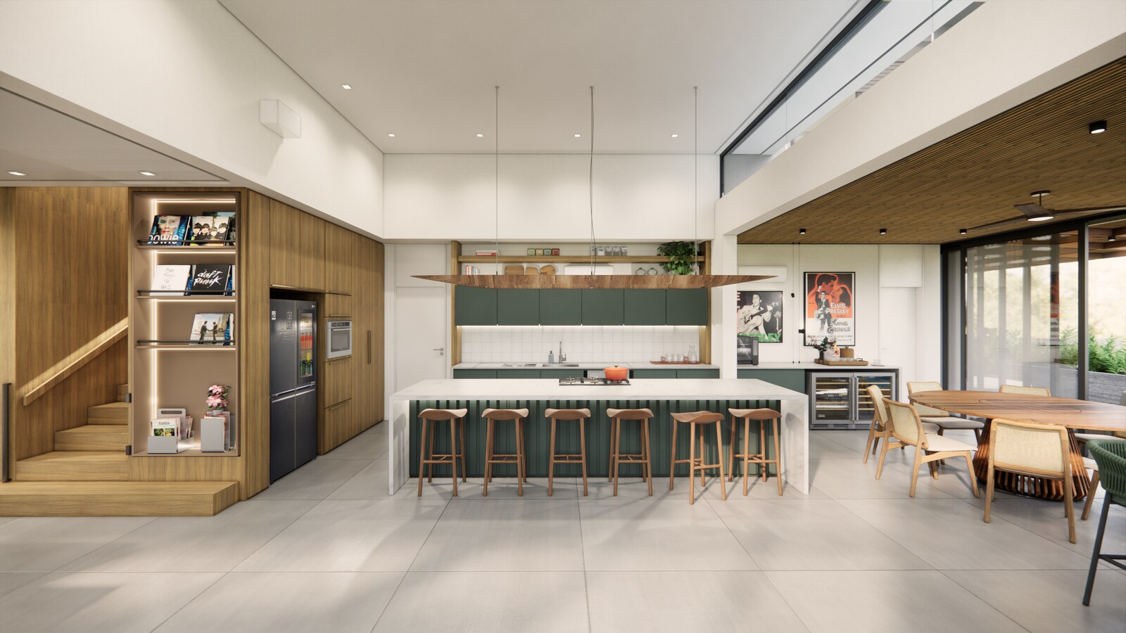 Para reforçar essa conexão com os moradores, foram destinados lugares especiais em vários ambientes para que quadros, retratos, lembranças de viagem e objetos pessoais possam ser expostos de forma natural e significativa. Esses elementos não só decoram os ambientes, mas também contam histórias e fortalecem os laços entre a casa e seus habitantes. Dessa forma, cada item se torna parte essencial da vivência diária, transformando o espaço em um refúgio pessoal e único.