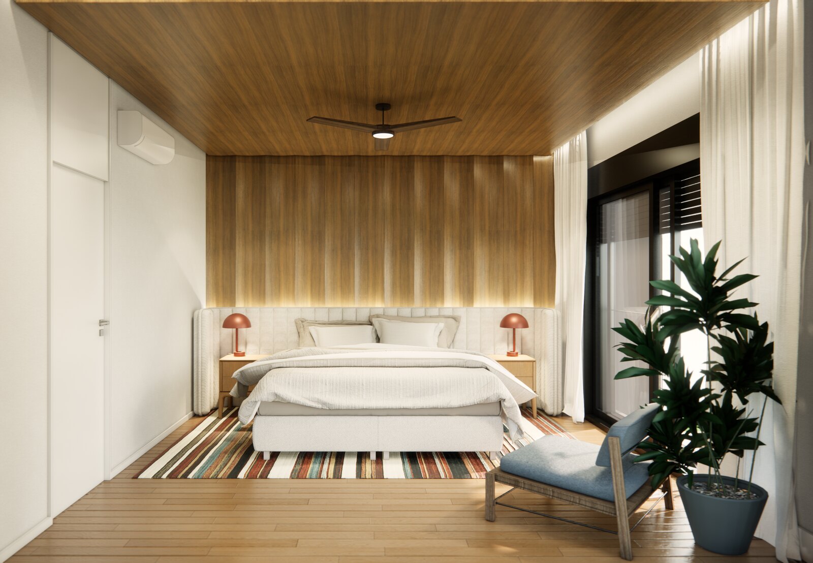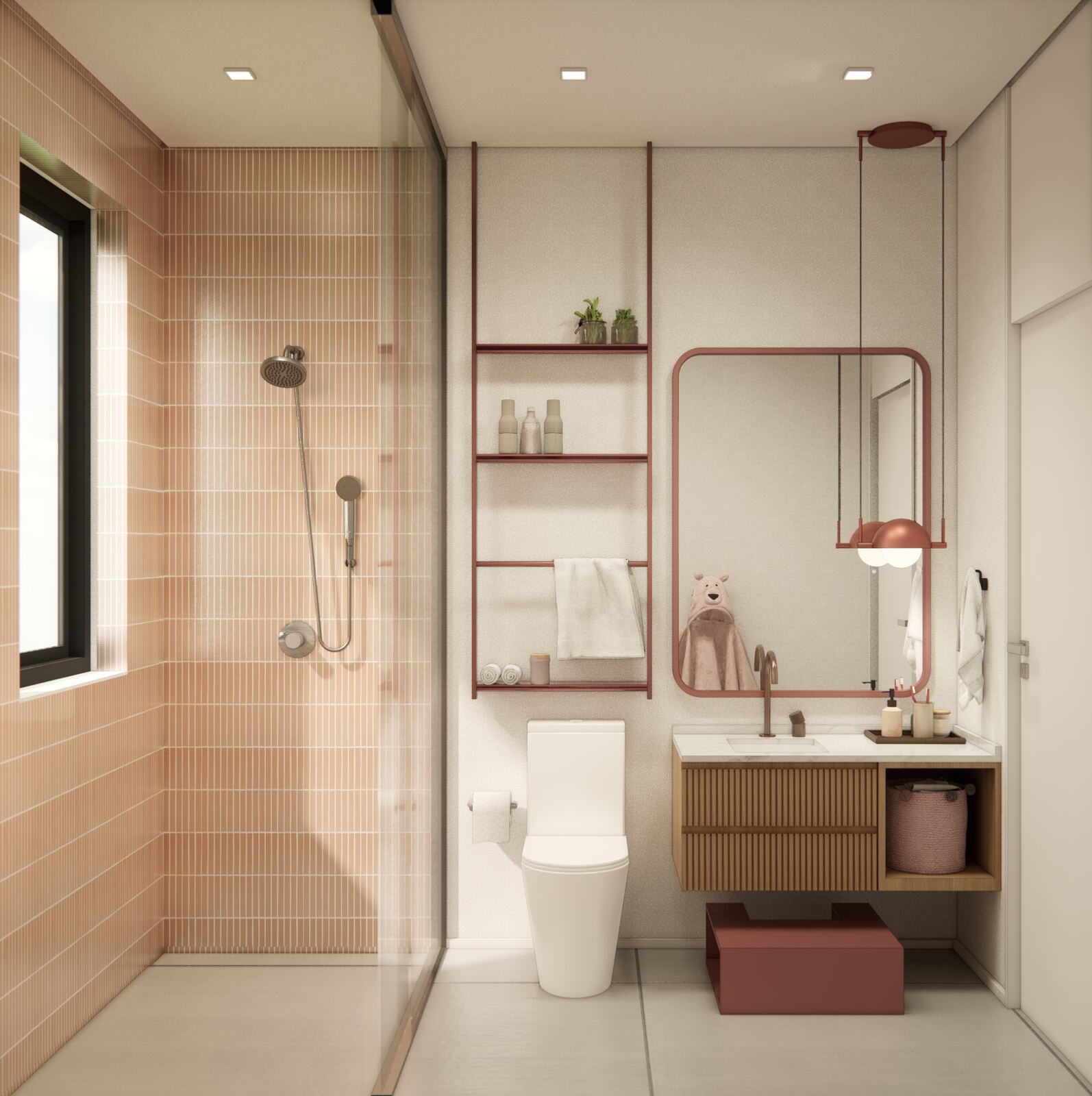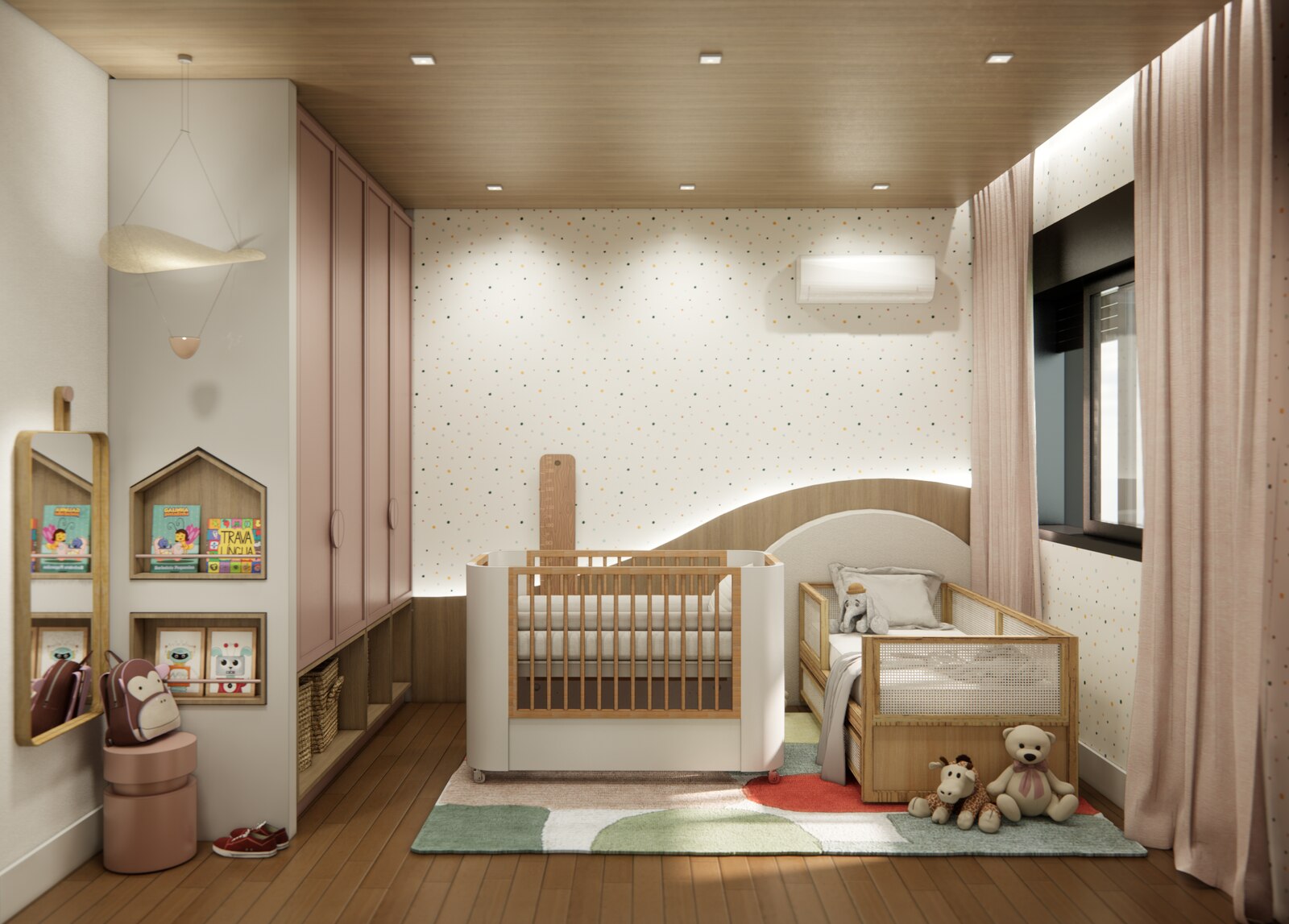 Um dos elementos que mais se destaca é o uso equilibrado da cor, que contrasta e harmoniza com a presença marcante da madeira. Essa combinação cria uma atmosfera de conforto visual, ao mesmo tempo em que traz pontos de interesse e pequenas surpresas, que despertam a curiosidade e acrescentam charme ao conjunto. Em vez de ser apenas um pano de fundo, a paleta de cores dialoga ativamente com a estrutura do espaço, realçando a personalidade do projeto.